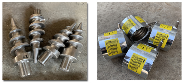 7、由于進(jìn)入石塊,鐵釘?shù)犬愇锘蚱渌蚴雇七M(jìn)器螺旋部分磨損。